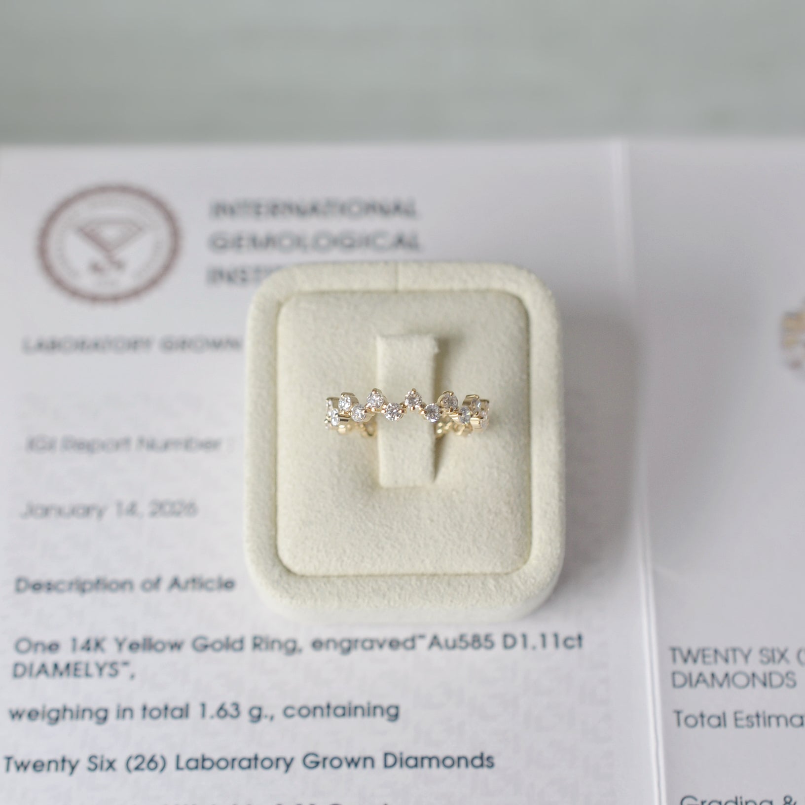 Alliance Cascade - Diamants de laboratoire - Or jaune 14 carats -Rond 1.11 carats - taille 52