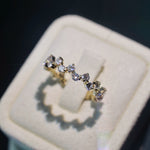 La finesse de l’anneau en or jaune 14 carats souligne la délicatesse des pierres et révèle une élégance raffinée et intemporelle.