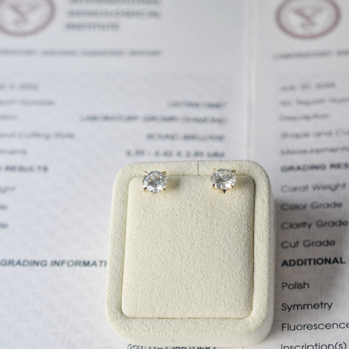 Alya Earrings – Lab-grown Diamond - 1 carat (2X) - Round - 18K Yellow Gold